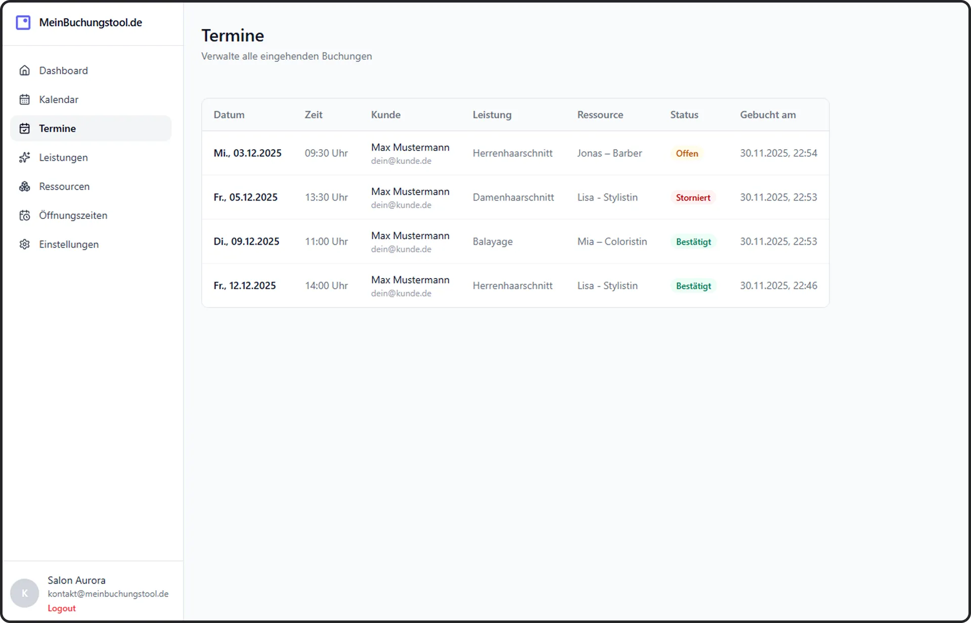 Du bekommst einen eigenen Buchungslink, den du z. B. in deine Instagram-Bio, WhatsApp oder auf QR-Flyer setzen kannst, komplett ohne Website.
